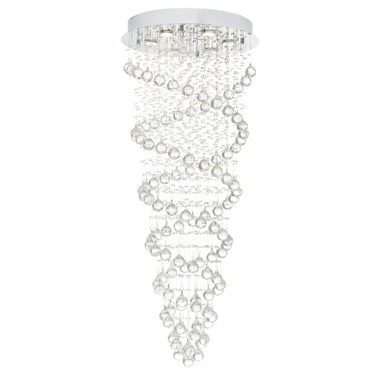 Add a touch of luxury that flows with light and form. The Double Spiral 20" Chrome Flush Mount Chandelier delivers dramatic sparkle in a vertical silhouette. Featuring a polished chrome canopy and spiraling strands of clear crystals, this elegant fixture redefines contemporary glam in spaces like foyers, stairwells, and living rooms. Elegant Spiral Design: Crystal strands descend in a graceful spiral, creating a dazzling visual display from above. Bright & Functional: Includes six GU10 bulb bases to provide strong illumination while enhancing the rooms ambiance. Flush Mount Structure: Perfect for spaces where ceiling height is limitedstill offers dramatic vertical presence. Premium Chrome Finish: The 20" round canopy reflects light beautifully for a modern, refined look. Ideal for Grand Entrances: At 47" tall, its perfectly proportioned for stairwells, open foyers, or formal living areas. Elevate your home with the Double Spiral Chandeliera fusion of light, motion, and modern sophistication.