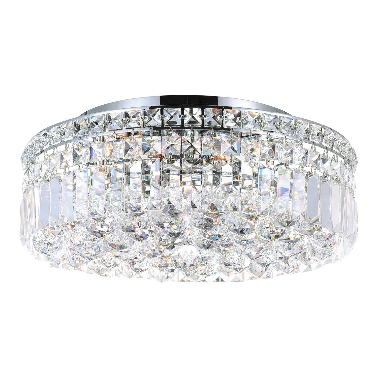 Chandelier Magic Without the Bulk The Colosseum 4-Light Flush Mount solves the ultimate design dilemma: how to get high-end sparkle in no-space situations. This 12" diameter ceiling light combines the crystal density of a luxury chandelier with the practical profile needed for apartments, ranch homes, and cramped entries. Why It Beats Basic Flush Mounts: Optical Expansion Prism-cut crystals create 360 light refraction, making low ceilings appear inches taller. Bulb Flexibility Four E12 sockets (LED Compatible) allow mixing bulb temps (e.g., warm 2700K for evenings, bright 4000K for morning prep). BACL-Certified Safety Tested to withstand vibration and humidity (perfect for humid climates or busy households). Perfect For: 1950s ranch home entries with 8' ceilings Apartment foyers that need "wow" without renovation Walk-in closets deserving boutique-style lighting Install where lighting should cheat dimensions as brilliantly as it illuminates. Designer Secret: For maximum sparkle, use clear (not frosted) LED bulbs and position near a mirror to double the light play.