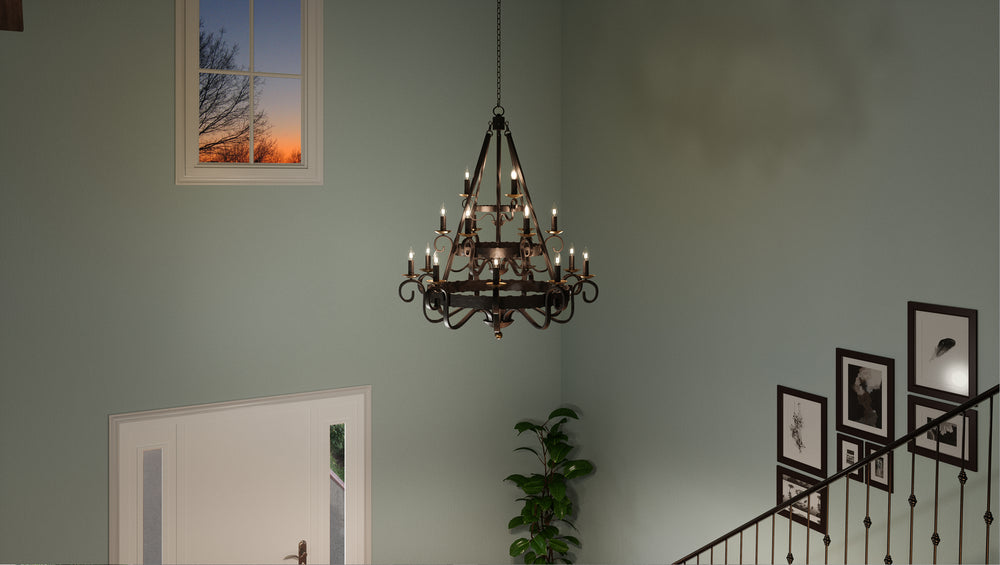 18 Light Chandelier by Quoizel in Rustic Black from the Noble collection.