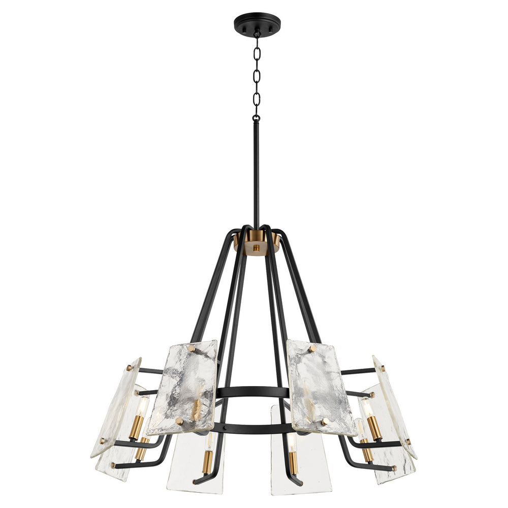Eight Light Chandelier by Quorum in Textured Black w/ Aged Brass from the Tioga collection.