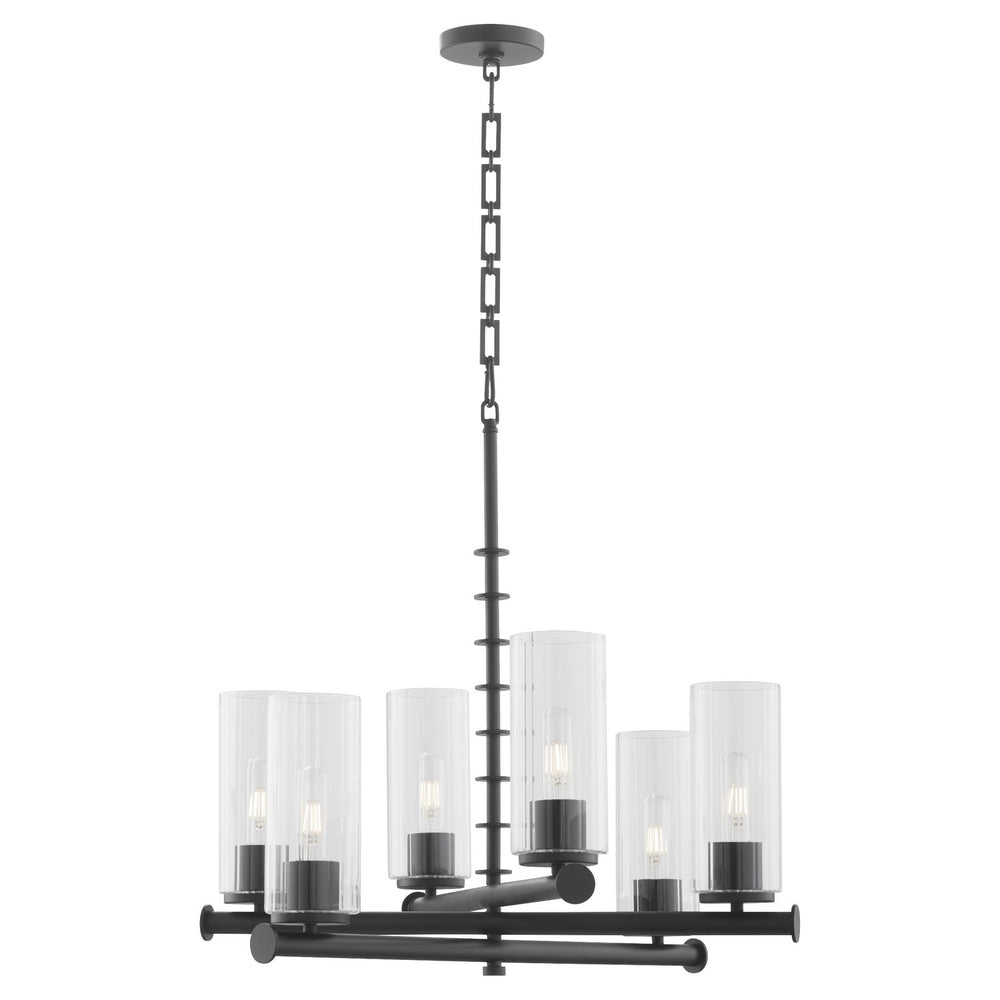 Six Light Chandelier by Quorum in Matte Black from the Juniper collection.