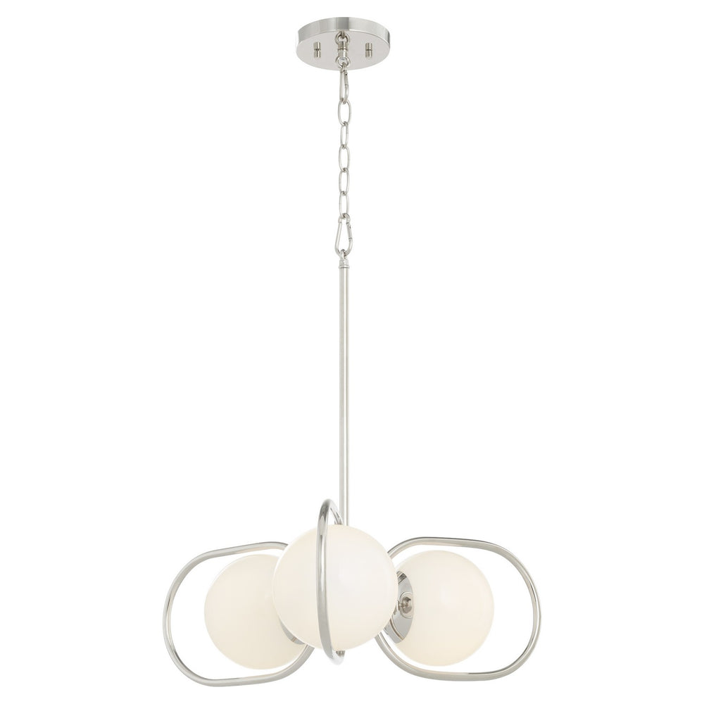 Three Light Chandelier by Quorum in Polished Nickel from the Belmont collection.