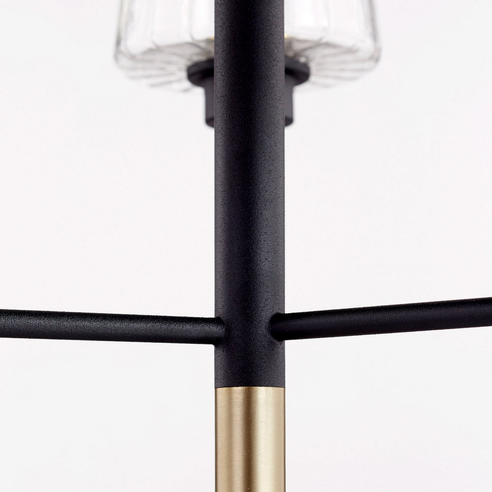 The Dalia series is a minimalist-inspired design sporting a linear frame with an abundance of soft-angular curves. The two-toned, Aged Brass and Noir finish is anchored by tulip-shaped, clear fluted glass shades. This luminary is great for any living room, dining room, or entryway space with a mid-century modern design. Thanks to the damp listing, this soft-contemporary fixture is also suitable for outdoor kitchens and covered patios. The chain/stem hung suspension system is adjustable to fit your space`s needs.Most orders over $99 ship free anywhere in the US!