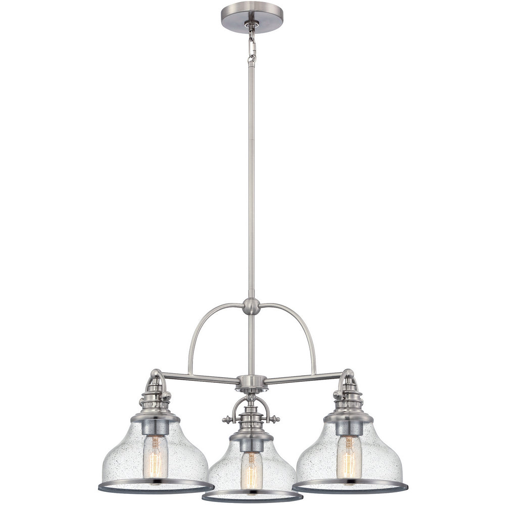 Three Light Chandelier by Quoizel in Brushed Nickel from the Grant collection.