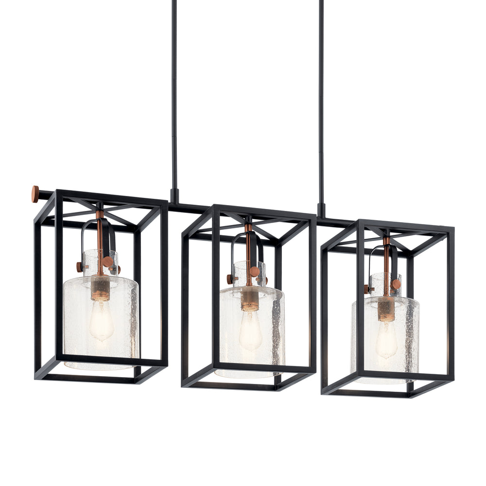 Three Light Linear Chandelier by Kichler in Black from the Kitner collection.