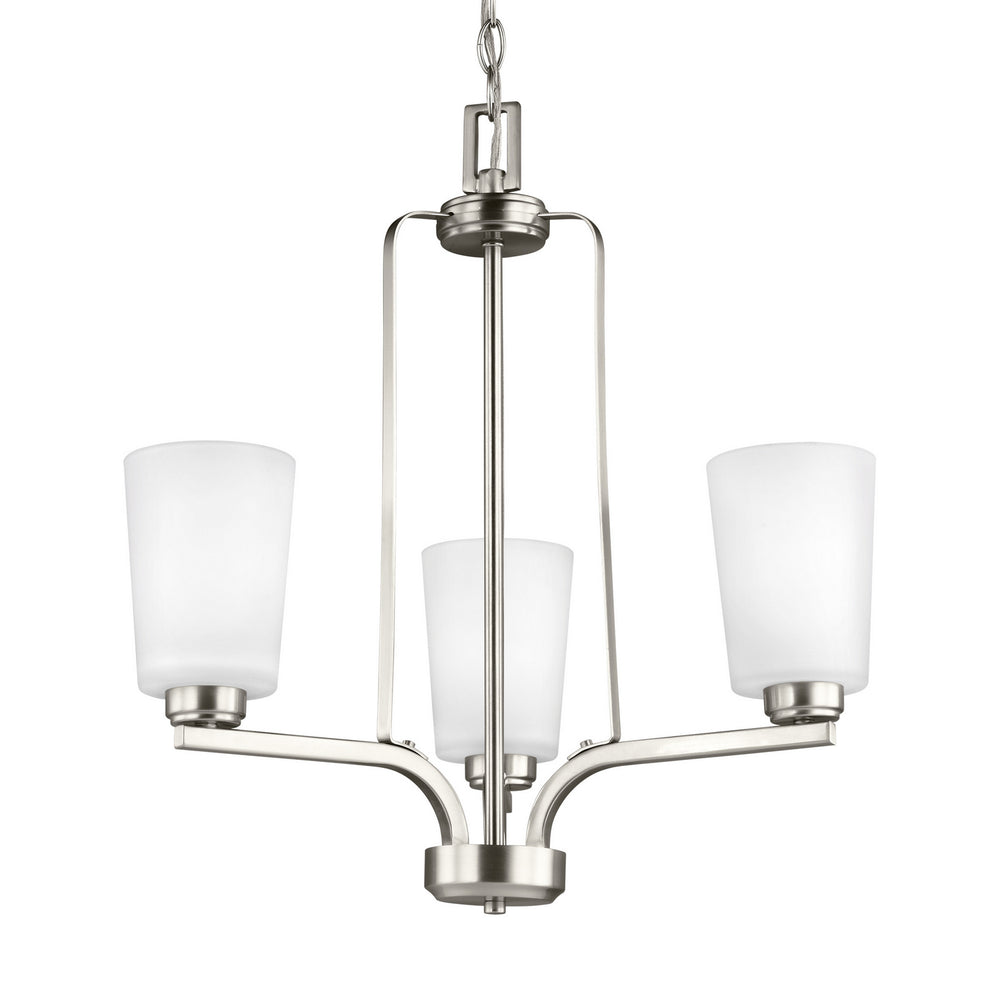 Three Light Chandelier by Generation Lighting. in Brushed Nickel from the Franport collection.
