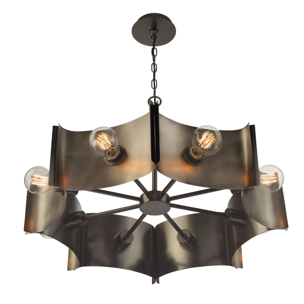 Eight Light Chandelier by Eurofase in Vintage Nickel from the Metallo collection.