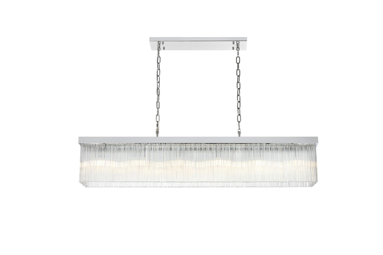Turn your space into a glowing masterpiece with this striking pendant light, crafted from durable iron and shimmering clear ribbed glass. The cascading layers create a stunning interplay of light and shadow, refracting illumination into a radiant display that transforms your space into an illuminated work of art. Available in chrome for a sleek, contemporary aesthetic, black for bold contrast, and satin gold for an inviting warmth, this pendant light is as versatile as it is beautiful. Whether you choose a single tier for minimalist charm, two tiers for balanced depth, three tiers for bold presence, or four tiers for show-stopping grandeur, there's an option for every setting. Featuring both round and rectangular frame designs, this fixture adapts to any space with ease. Complete with a matching canopy and chain, and fully dimmable for customized lighting, this pendant pairs perfectly with the coordinating single-tier flush mount and wall sconce collection, ensuring a cohesive, radiant design throughout your home or office. Please note: light bulbs are sold separately.