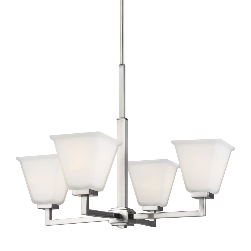 The Ellis Harper four light single tier chandelier in brushed nickel enhances the beauty of your home with ample light and style to match today's trends. Ellis Harper has an Arts and Crafts pedigree with a Modernist twist. The array of fixtures showcases the commitment to high style with robust construction and craftsmanship at an exceptional price. The subtle detail allows this transitional design to easily fit into any decor. The sleek, geometric arms and square Satin Etched glass shades add touches of elegance to its streamlined profile. The assortment includes: four- and eight-light chandeliers, a six-light linear, one-light mini-pendant, and one-, two-, three- and four-light bath fixtures. All fixtures are offered in either a Brushed Nickel or Brushed Oil Rubbed Bronze.Generation Lighting. Four Light Chandelier in Brushed Nickel | Fan DiegoFour Light Chandelier by Generation Lighting. in Brushed Nickel from the Ellis Harper collection. Save on the largest selection of Generation Lighting. Mid. Chandeliers with free shipping deals.3113704-962Brushed Nickel["Dining Room", " Entry Room/Hallway", " Living Room"]Dining Room, Entry Room/Hallway, Living RoomDining RoomEntry Room/HallwayLiving Room24.7519.2524.75(3) 12'' ,(1) 6'' DP:5'' W:5'' H:1'' Square475A19MediumNoNo120 Volt["Steel"]SteelcETLDampNoEAMid. Chandeliers19'' - 24'' 19'' - 24'' $200-$300Etched / White Inside120'' Clear Silver(3) 12'' Stems,(1) 6'' StemNoNoNoNoHardwiredNo11.04NoChinaNoYesNohttp://www.SeaGullLighting.com/58391/3113704%2D962.HTMLhttps://v1.generationlighting.com/i/SFMC%20Images/SGL/SpecSheets/3113704-962.pdf06/15/2023Glass UpPewter, Nickel, SilverTransitionalMid. ChandeliersGlass UpTransitional214.224.258.519.252.3Parcelhttps://v1.generationlighting.com/i/SFMC%20Images/SGL/InstructionSheets/990CH311370_-ELH.pdf