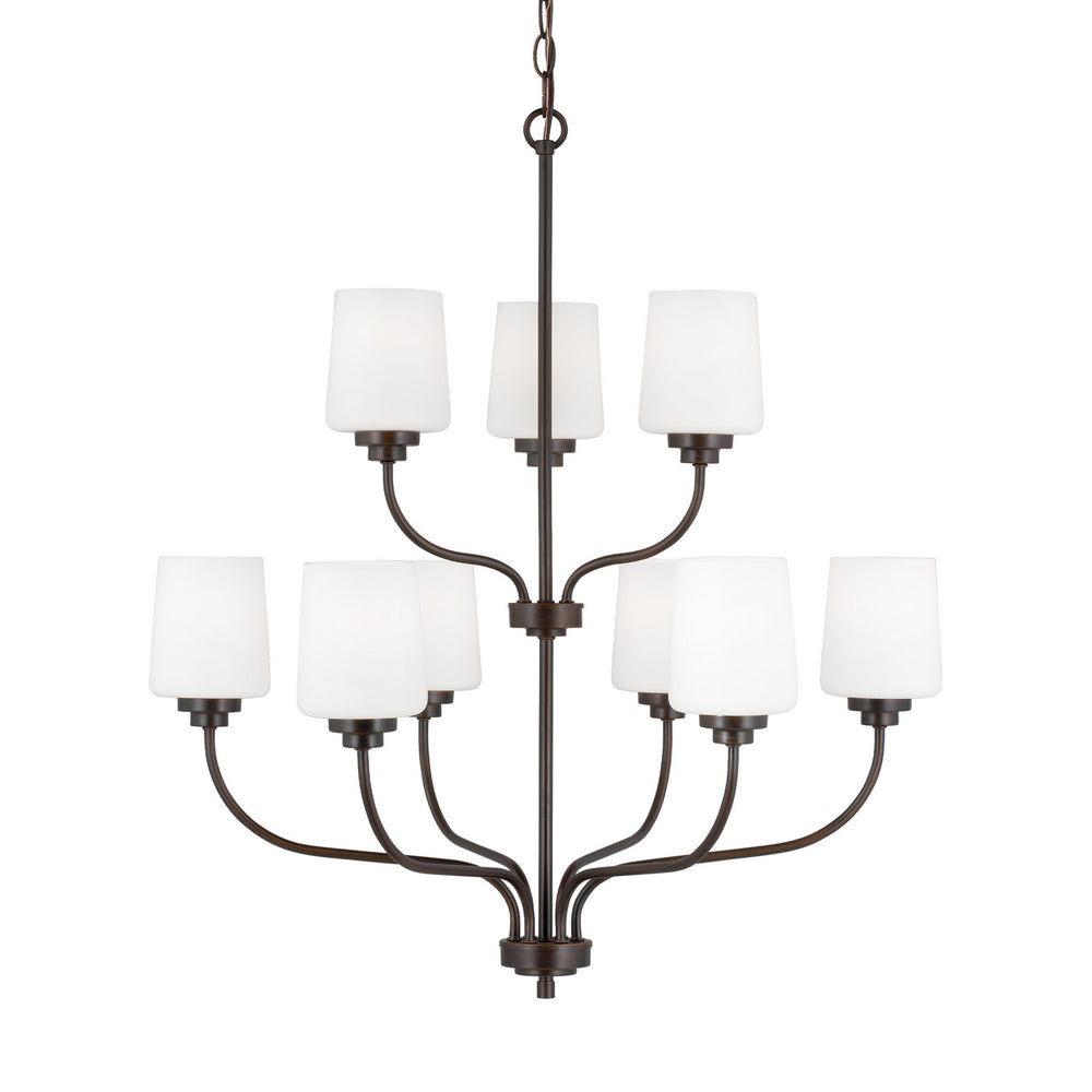 Nine Light Chandelier by Generation Lighting. in Bronze from the Windom collection.