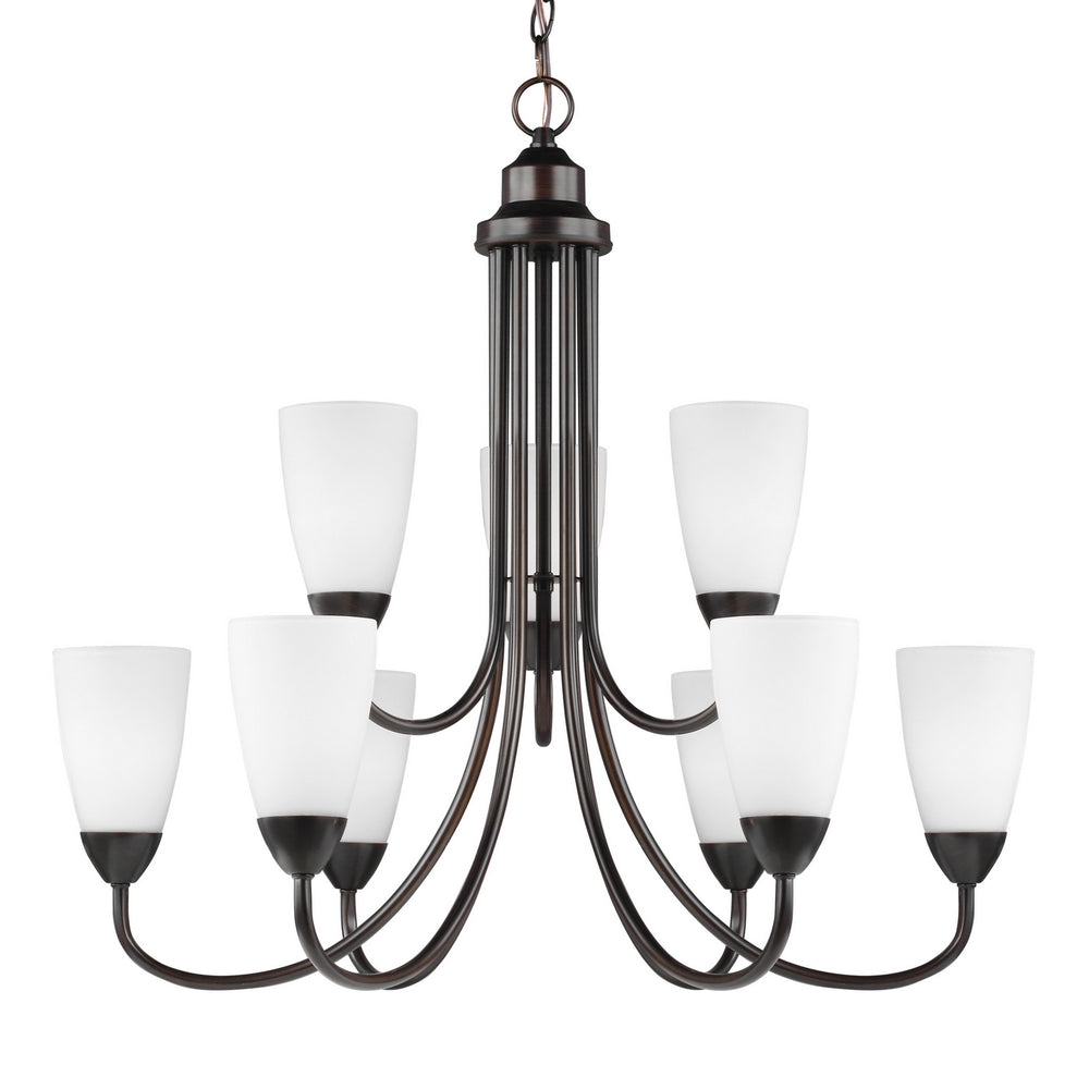 The Seville nine light multi tier chandelier in bronze supplies ample lighting for your daily needs, while adding a layer of today's style to your home's décor. The Seville collection represents commitment to high style at a sharp price. The modernist design is epitomized by the teardrop curves in the arms tipped by Etched glass diffusors throughout the chandeliers and bath fixtures. The collection offers a '' whole home'' lighting solution in every imaginable category. The assortment includes nine-light, five-light, and three-light chandeliers (either with up-light or down-light), pendants in four sizes as well as one-light, two-light, three-light , four-light and five-light wall/bath fixtures. Install a stylish and elegant addition to any room in the house. Seville is offered in Brushed Nickel and Burnt Sienna finishes.Generation Lighting. Nine Light Chandelier in Bronze | Fan DiegoNine Light Chandelier by Generation Lighting. in Bronze from the Seville collection. Save on the largest selection of Generation Lighting. Mid. Chandeliers with free shipping deals.3120209-710Bronze["Dining Room", " Entry Room/Hallway", " Living Room"]Dining Room, Entry Room/Hallway, Living RoomDining RoomEntry Room/HallwayLiving Room28.8827.13D:5'' H:7/8'' Round975A19MediumNoNo120 Volt["Steel"]SteelcETLDampNoEAMid. Chandeliers25'' - 30'' 25'' - 30'' $300-$500Etched / White Inside72'' 120'' BrownNoNoNoNoHardwiredNo16.3NoPhillippinesNoYesNohttp://www.SeaGullLighting.com/56887/3120209%2D710.HTMLhttps://v1.generationlighting.com/i/SFMC%20Images/SGL/SpecSheets/3120209-710.pdf06/15/2023Glass UpBronze / DarkTransitionalMid. ChandeliersGlass UpTransitional224.229.7528.512.256.01Parcelhttps://v1.generationlighting.com/i/SFMC%20Images/SGL/InstructionSheets/990CH312020_-SVE.pdf