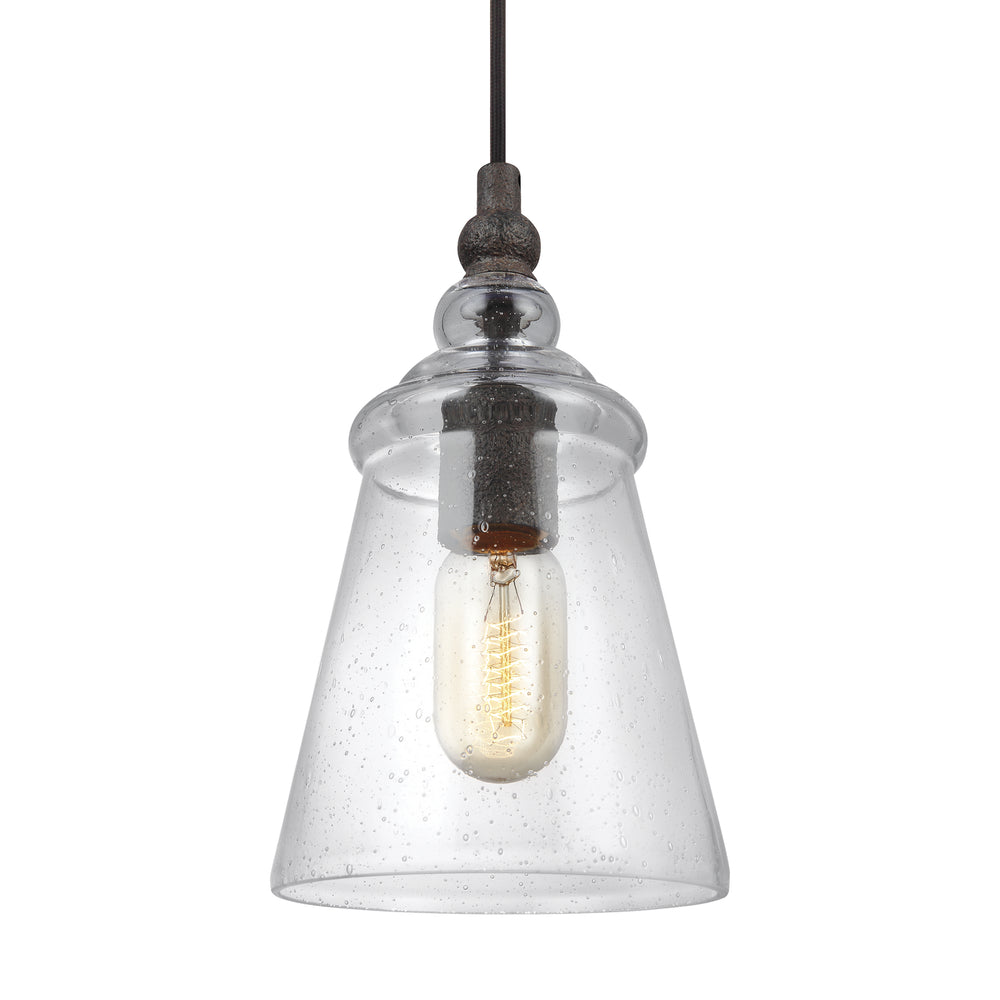 One Light Pendant by Generation Lighting. in Dark Weathered Iron from the Loras collection.