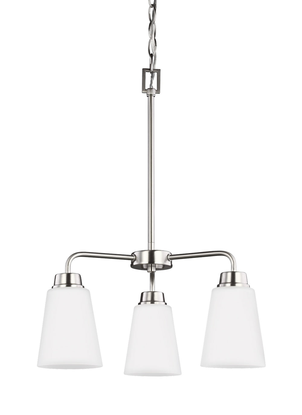 Three Light Chandelier by Generation Lighting. in Brushed Nickel from the Kerrville collection.