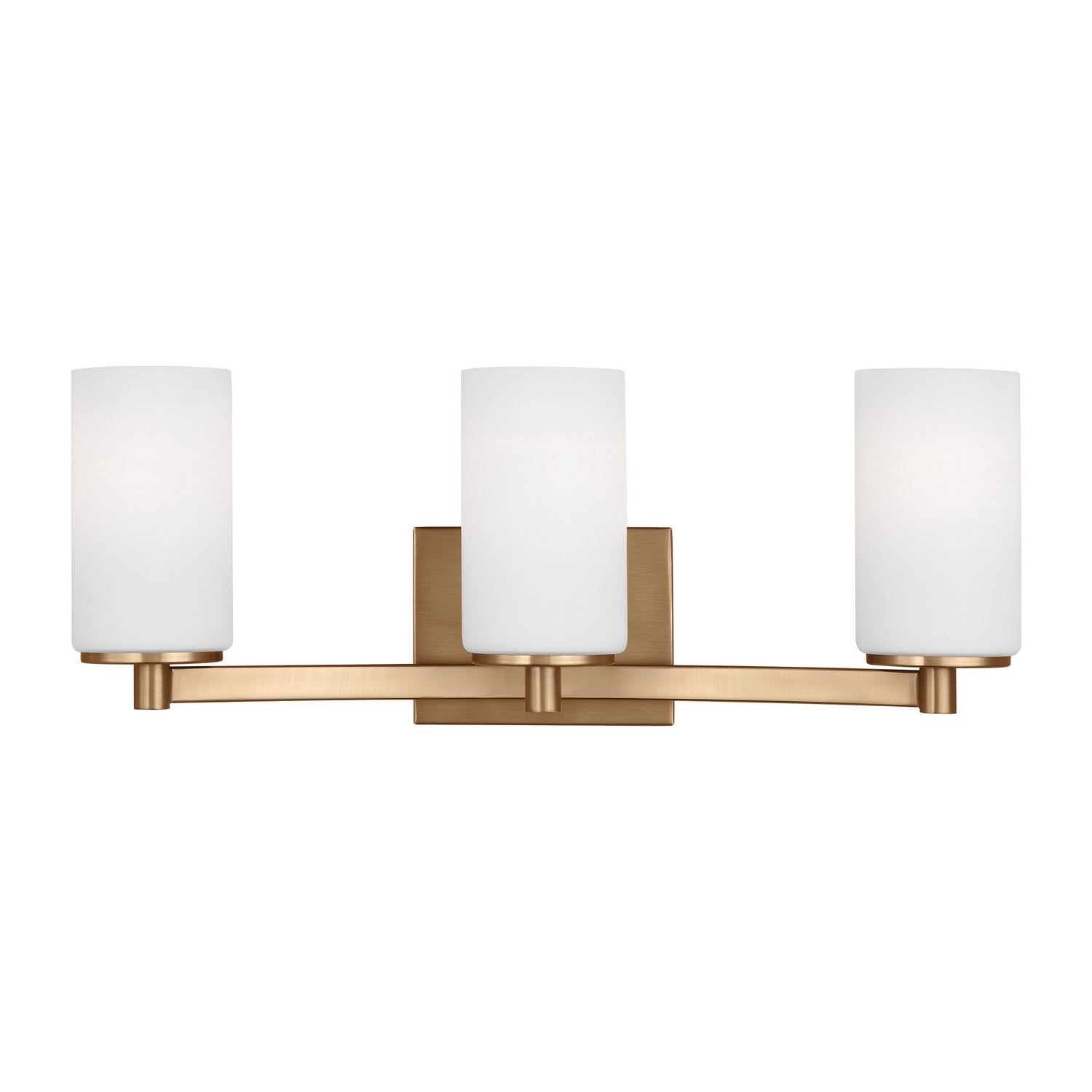 Three Light Wall / Bath by Generation Lighting. in Satin Brass from the Hettinger collection.