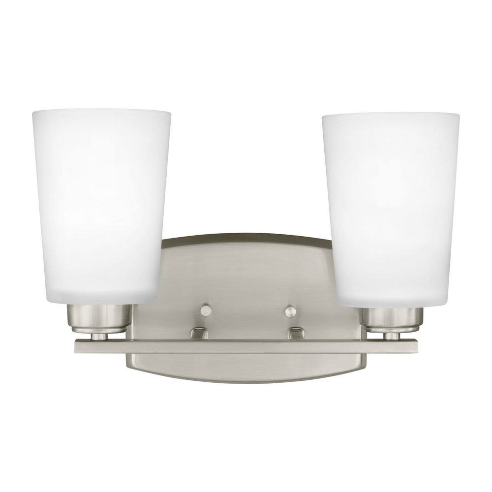 Generation Lighting. Two Light Wall / Bath in Brushed Nickel | Fan Diego Two Light Wall / Bath by Generation Lighting. in Brushed Nickel from the Franport collection. Save on the largest selection of Generation Lighting. Bathroom Fixtures with free shipping deals. 4428902EN3-962 Brushed Nickel ["Bathroom", " Bedroom", " Entry Room/Hallway"] Bathroom, Bedroom, Entry Room/Hallway Bathroom Bedroom Entry Room/Hallway 13.25 8.25 DP:1'' W:8'' H:5'' OB UP:5 3/4'' OB DOWN:2 1/2'' Rectangular 2 9 A19 Medium LED No No 120 Volt ["Steel"] Steel cETL Damp No EA Bathroom Fixtures 13'' - 18'' 7'' - 12'' $100-$200 Etched / White Inside 6.5'' Black/White Yes 800 3000 90 Yes No Yes 6.25 Hardwired No 3.81 No China No Yes No http://www.SeaGullLighting.com/56736/4428902EN3%2D962.HTML https://v1.generationlighting.com/i/SFMC%20Images/SGL/SpecSheets/4428902EN3-962.pdf 06/15/2023 Two Lights Pewter, Nickel, Silver Transitional Bathroom Fixtures Two Lights Transitional 2 5.3 13.5 7.5 11.5 0.67 Parcel 15000 https://v1.generationlighting.com/i/SFMC%20Images/SGL/InstructionSheets/990W4128901-442890_-FRA.pdf 230