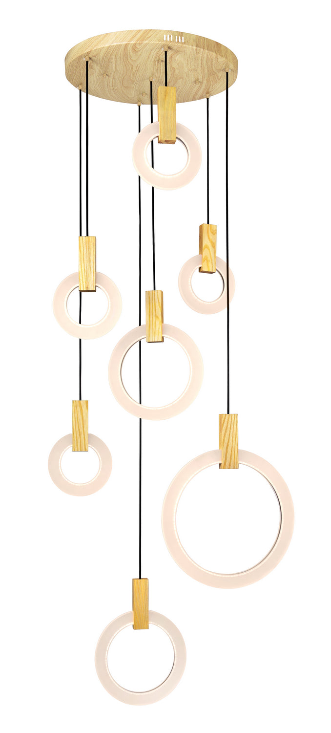 Round out your huge living space with the extraordinary appeal of the Anello Large LED Chandelier in White Oak. This is a multi-point pendant light displaying several LED rings suspending from a large round canopy in white oak finish. Exuding a modern yet homey beauty, this light fixture will catch eyes and turn heads but won't intimidate, it is simply perfect for spaces that you want to look and feel more inviting.