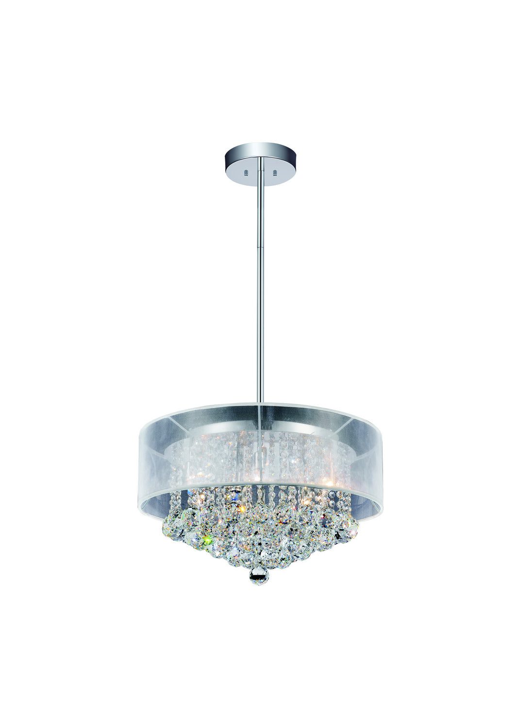 Bring elegance and brilliance to your space with the Radiant 9-Light 20-Inch Chandelier. This stunning fixture features strands of clear crystals encased in a sheer white shade, offering a beautiful blend of sparkle and soft, diffused light. Designed to elevate both modern and contemporary interiors, it creates a bright yet intimate ambiance. Ideal for dining rooms or kitchens, this chandelier adds graceful charm and functional beauty to your home.