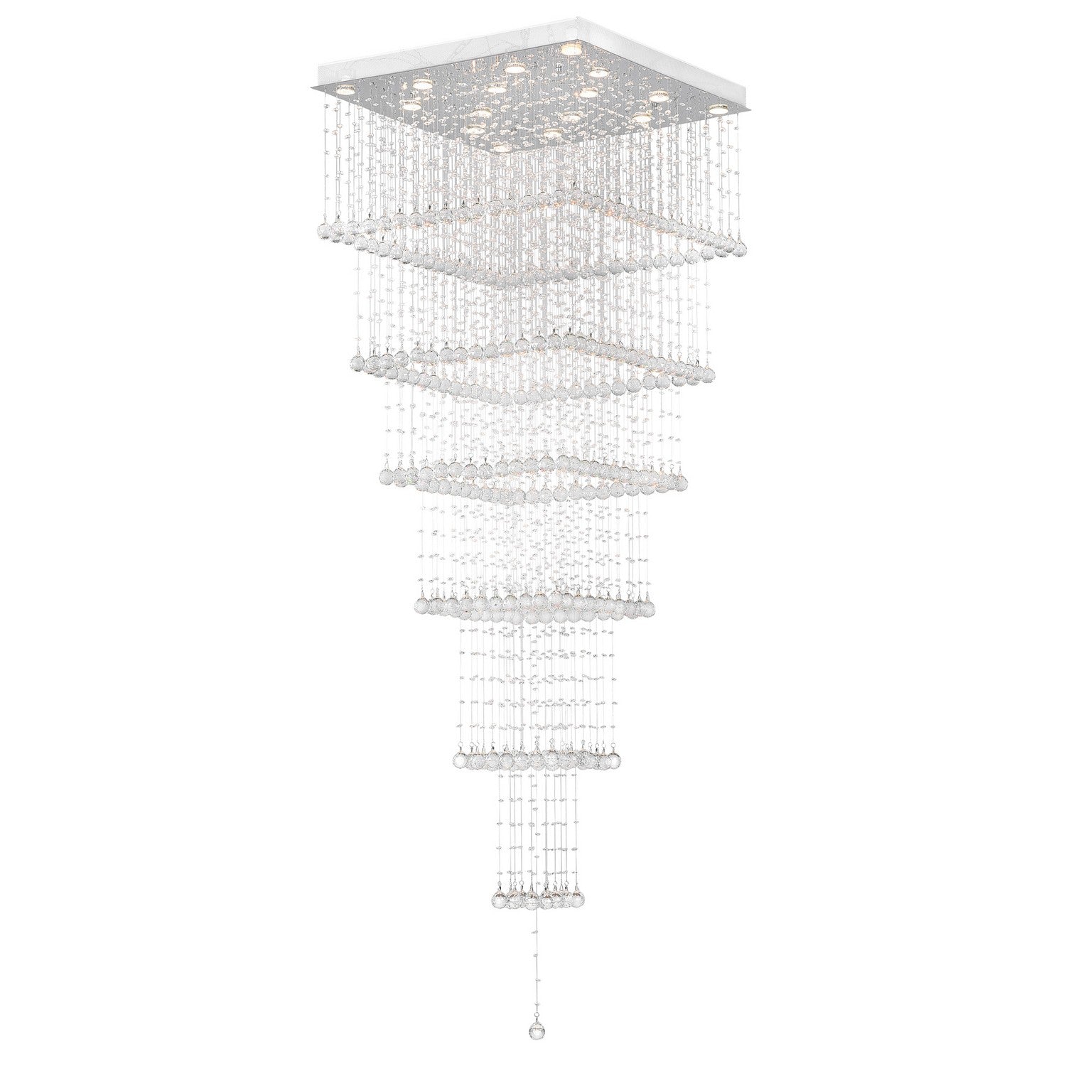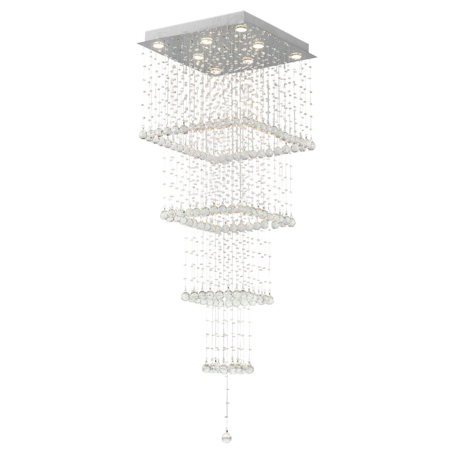 The Square 8 Light Flush Mount would make a stellar statement piece in your living room, entryway, or stairwell. This close-to-ceiling chrome-finished light source has four square tiers of crystal strands finished at the bottom tip with a single crystal ball drop. The fanciful design that sparkles day and night can clearly provide pizzazz to any space.