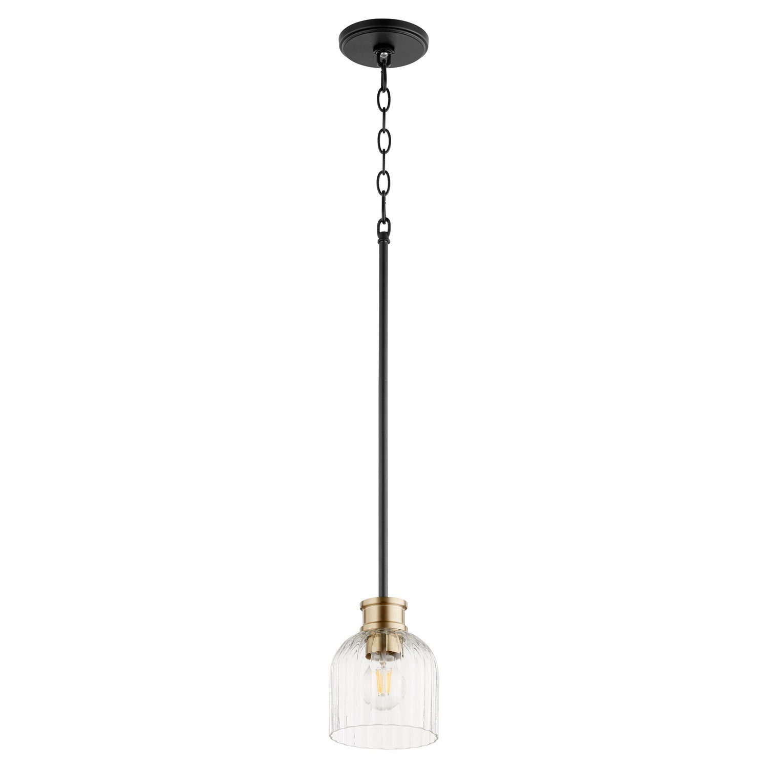 One Light Pendant by Quorum in Textured Black w/ Aged Brass from the Monarch collection.
