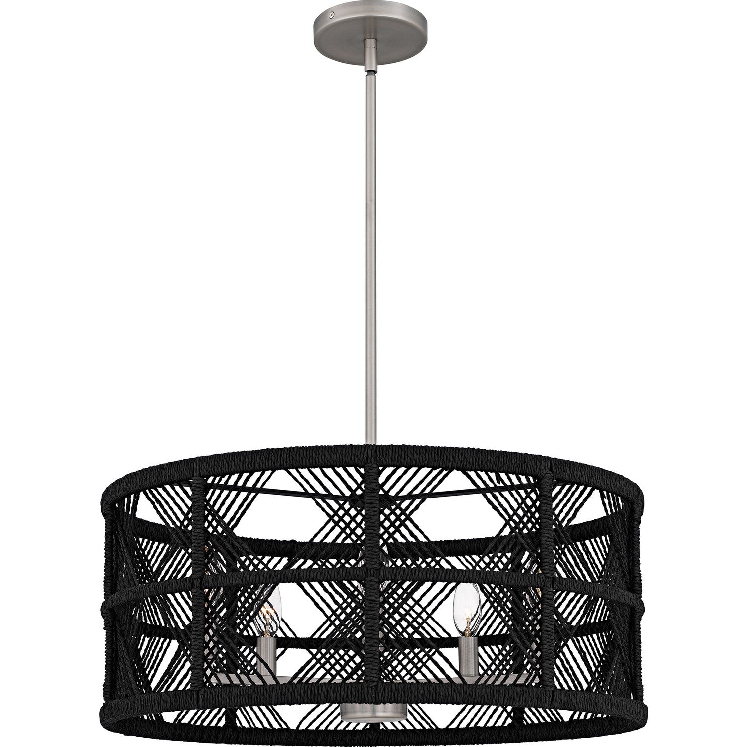 Introducing the Axford collection, where modern design meets natural charm. This collection features a distinctive rope shade that infuses warmth and texture into any space, while the sleek metal frame introduces an element of industrial chic. Choose from two elegant finishes: antique nickel with a black rope shade for a striking contrast, or matte black with a natural rope shade for a more earthy, sophisticated look. Axford is available as a drum pendant or semi-flush mount light.