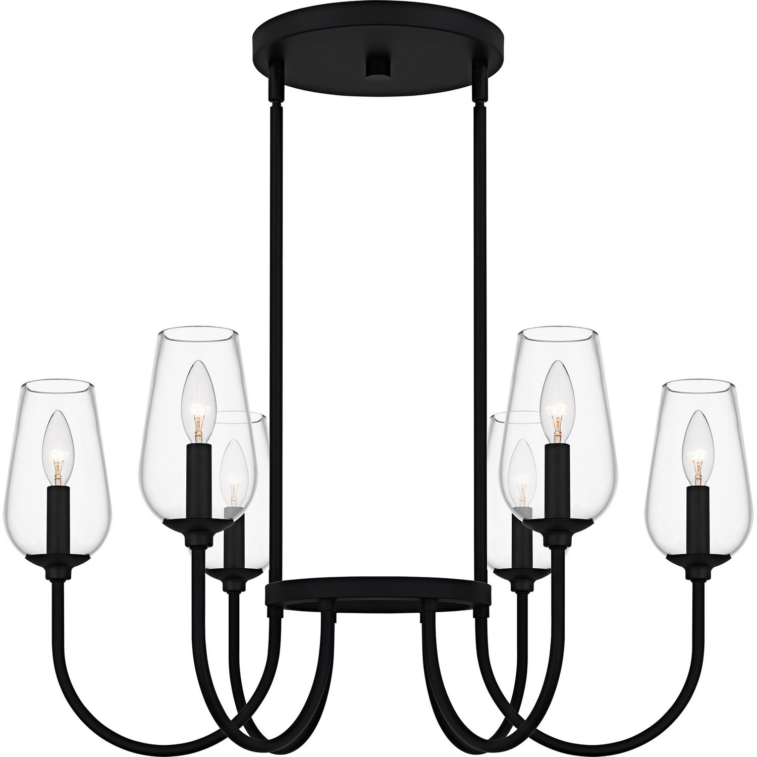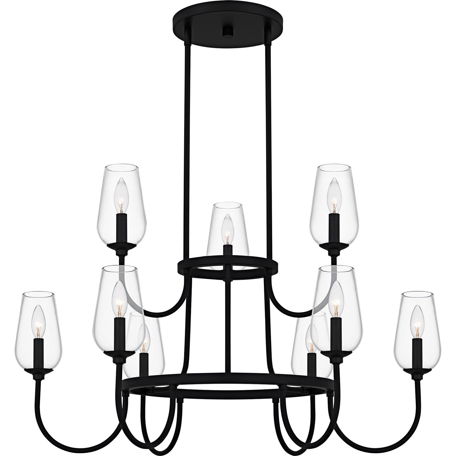 Introduce timeless elegance to your home with Viscount, featuring three sizes of chandeliers that perfectly blend transitional style with modern functionality. Designed to suit a variety of spaces and lighting needs, Viscount chandeliers offer a versatile and sophisticated lighting solution. Each chandelier in the Viscount collection boasts a sleek matte black finish that adds a touch of modern flair. The clear glass shades provide a refined touch, ensuring that the light is beautifully diffused, creating a warm and inviting atmosphere in any room.