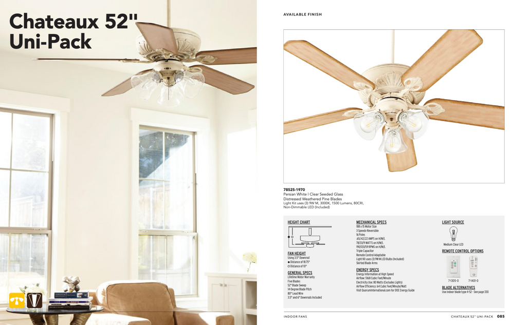 A Quorum vintage ceiling fan brings together nostalgic design and reliable airflow for a statement piece that feels both classic and functional. With unique finishes and antique-inspired blades, these fans offer a touch of timeless sophistication to any space.