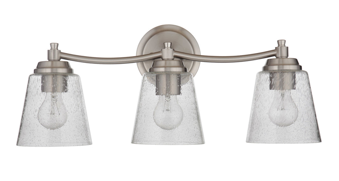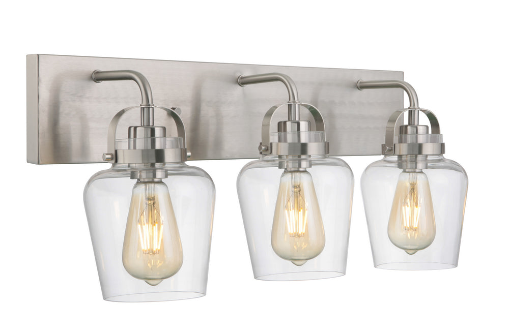 A three light vanity fixture is a lighting solution typically designed for bathroom or vanity spaces, featuring three individual light sources. This design provides balanced illumination, which is ideal for tasks like grooming and applying makeup. The style and finish options can vary widely, allowing it to complement various decor styles.