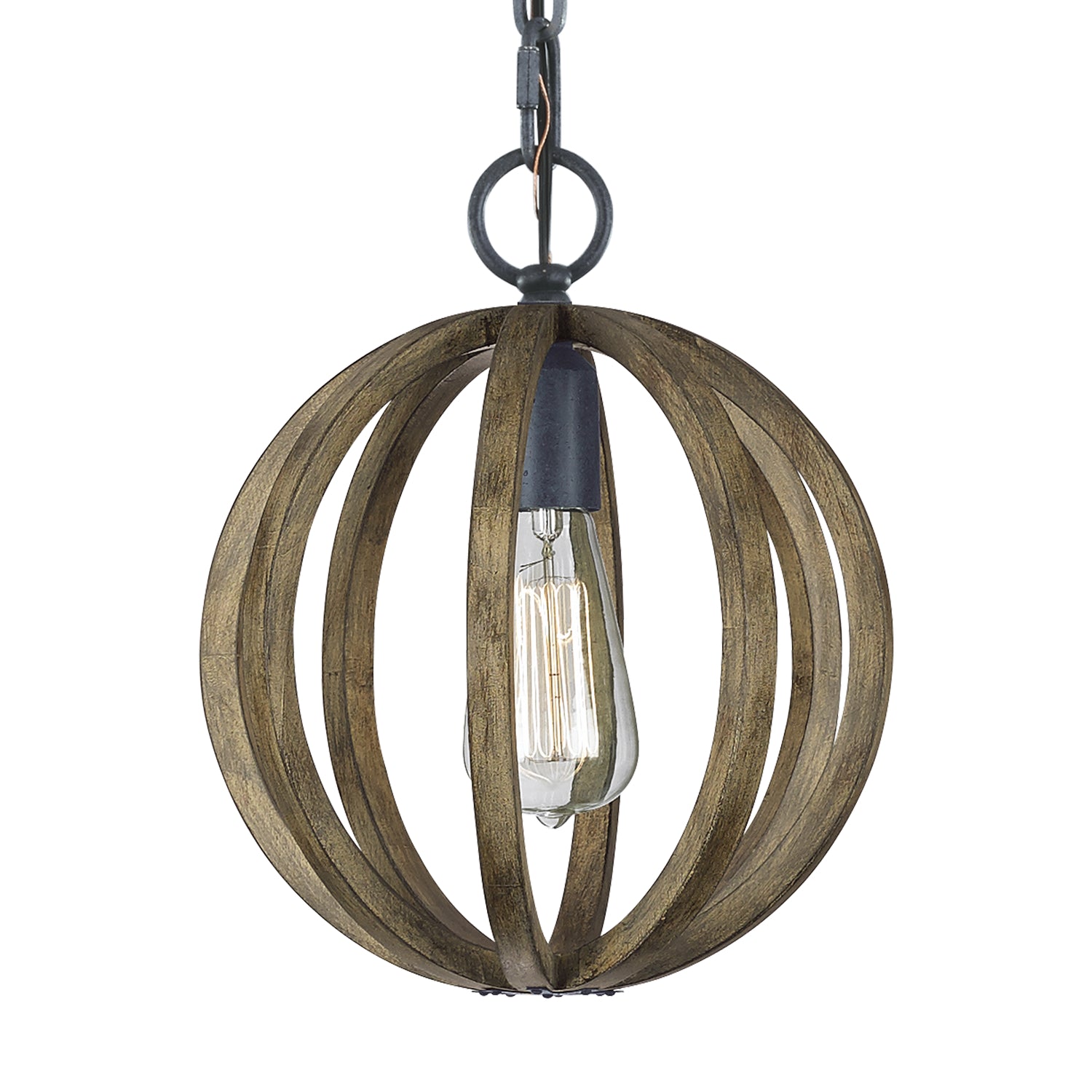 One Light Mini Pendant by Visual Comfort Studio in Weathered Oak Wood / Antique Forged Iron from the Allier collection.