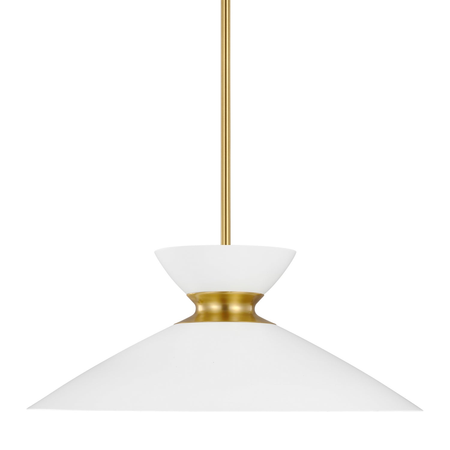One Light Pendant by Visual Comfort Studio in Matte White and Burnished Brass from the Heath collection.