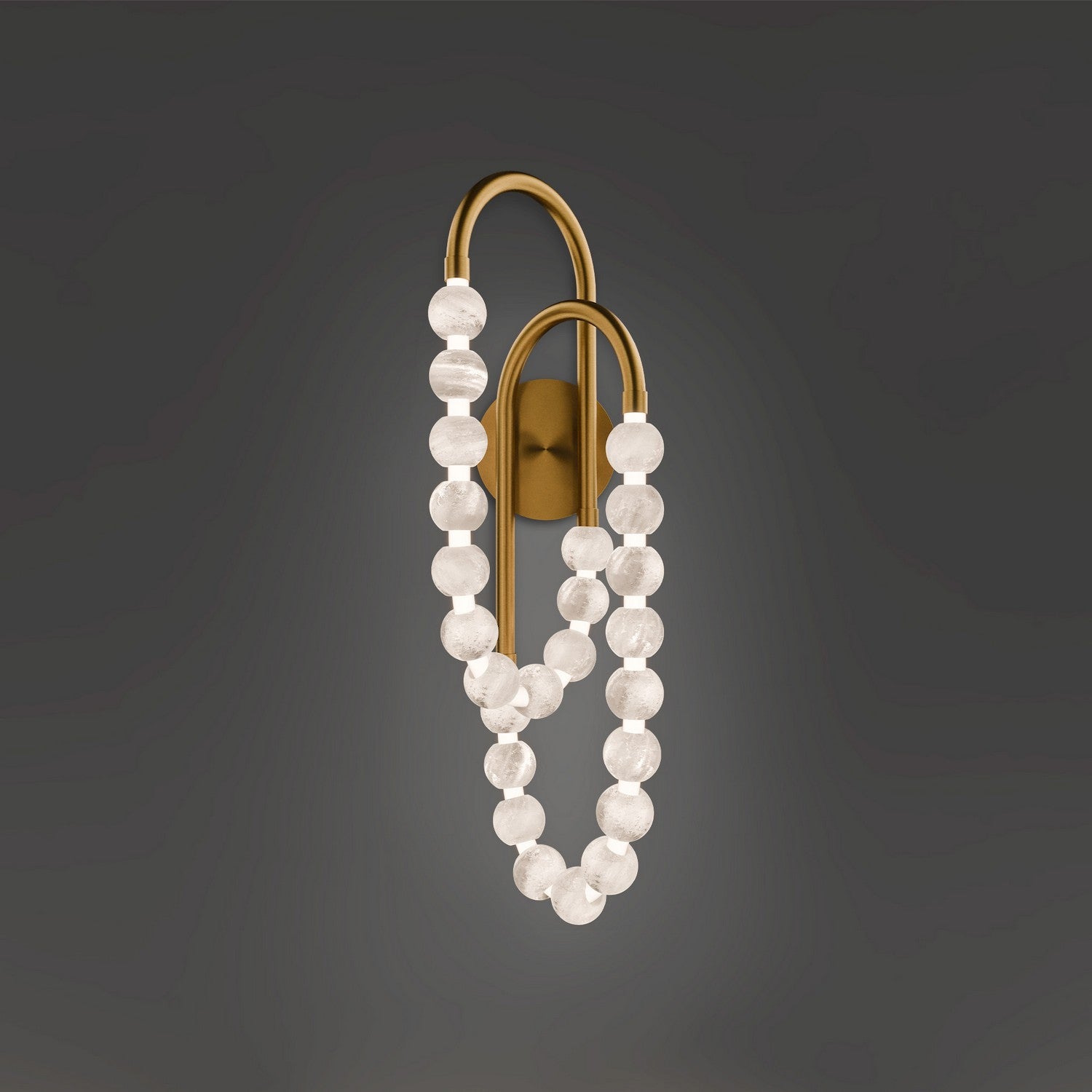 Organic Opulence. The Parel Wall Sconce is a bold and enchanting celebration of organic opulence, redefining indoor illumination with its captivating artistry. Each wall light is an uncompromising masterpiece, featuring ethereal Spanish Alabaster spheres suspended within delicate Silica Strands, creating a cascade of luminous beauty. This unique composition casts 3000K LED light, evoking the cultured elegance of natural pearls. Parel transforms any interior into a gallery of sophisticated design, where educated craftsmanship meets unparalleled visual poetry. PAREL is an exquisite testament to Modern Forms' commitment to elevating the illuminated experience.
