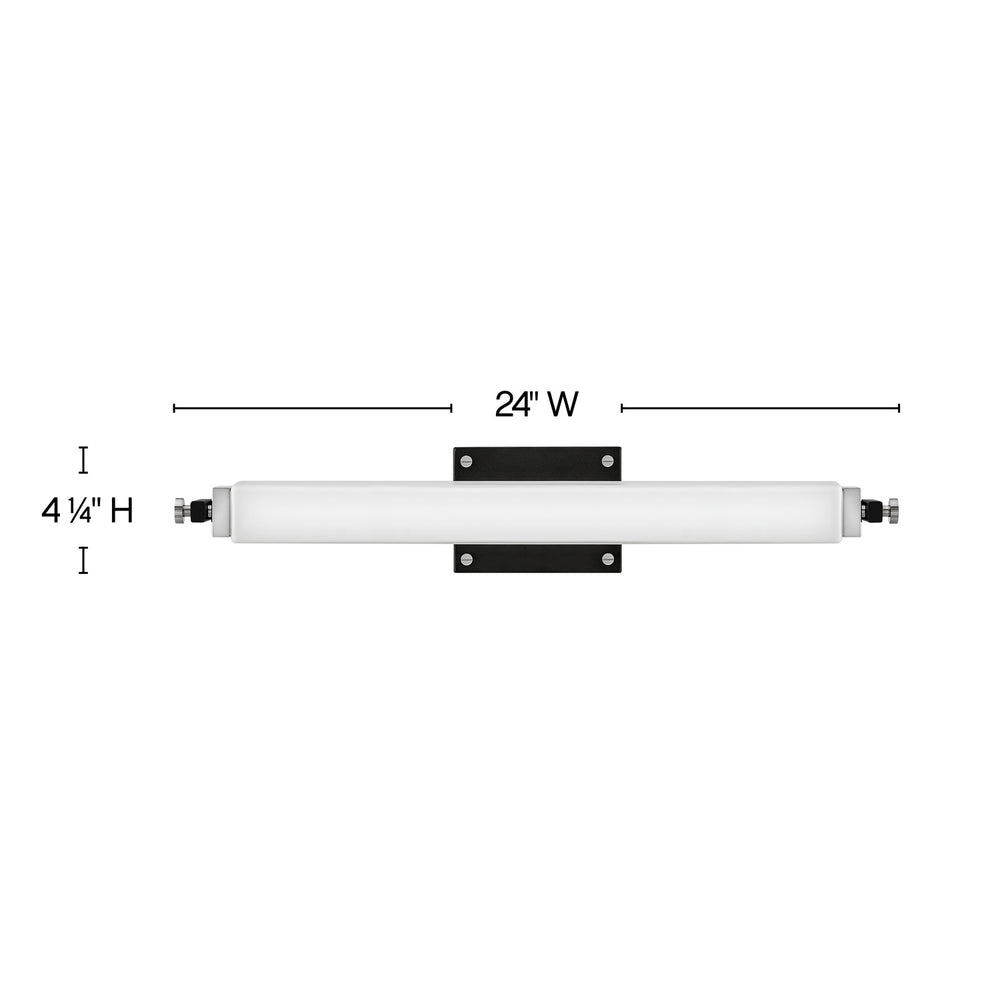 Rollins is both industrial in form and transitional in style. Unique rectangular etched opal glass has softly rounded edges offset by contrasting details on the backplate and the square knobs anchoring either end. This integrated LED design comes in two finish combinations, Black with Chrome and Black with Heritage Brass, and can be hung both vertically and horizontally.
