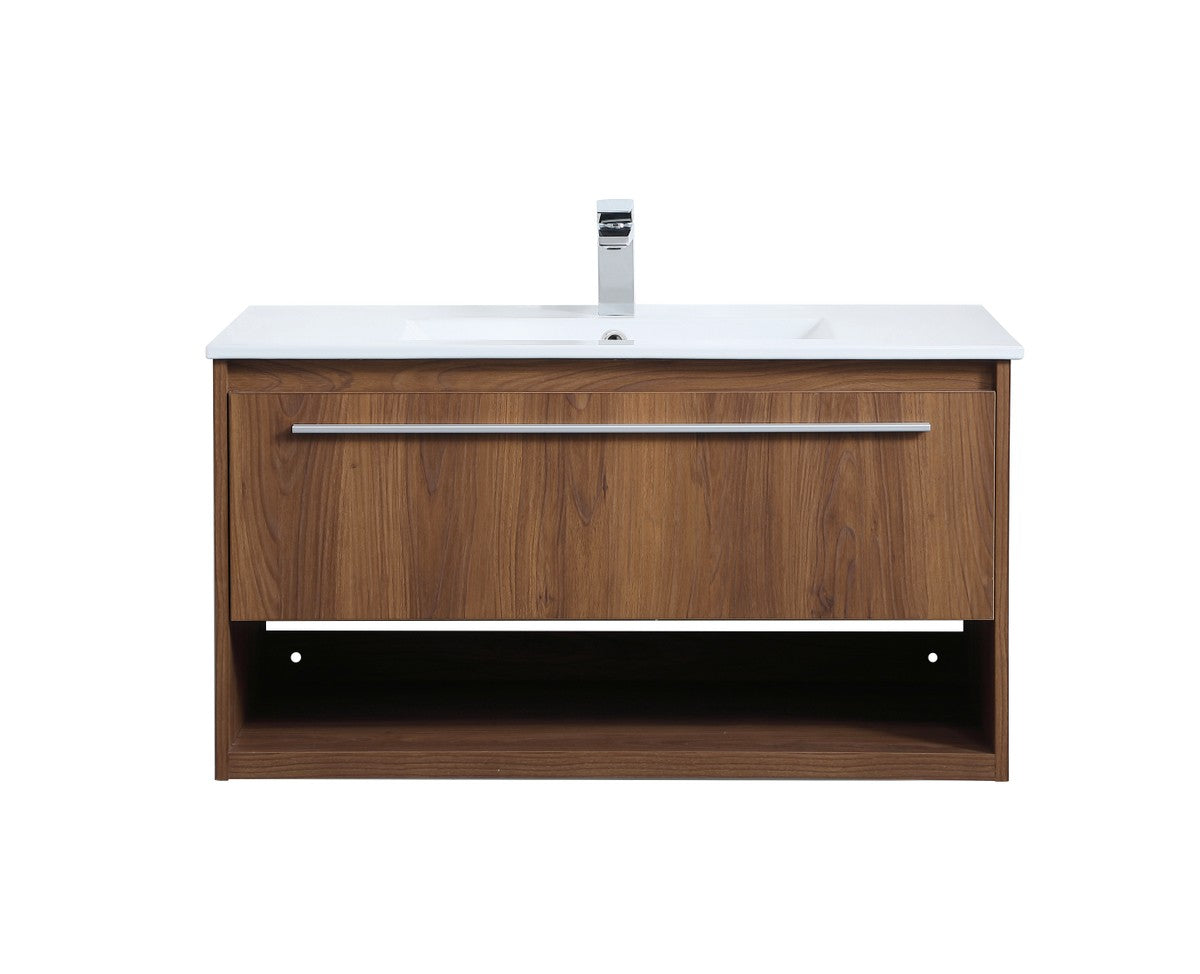 Single Bathroom Floating Vanity by Elegant Lighting in Walnut Brown from the Kasper collection.