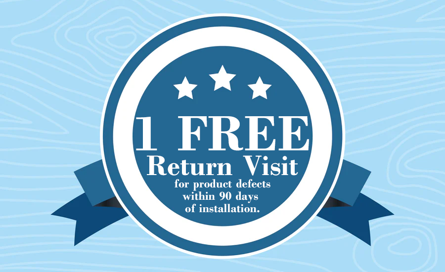 That’s why, when you purchase products and installation services from our website or one of our showrooms, we include one FREE return visit for product defects within 90 days of installation. If a product is found to be defective within this period, we’ll cover the labor costs for a return visit to replace the item, ensuring your complete peace of mind.